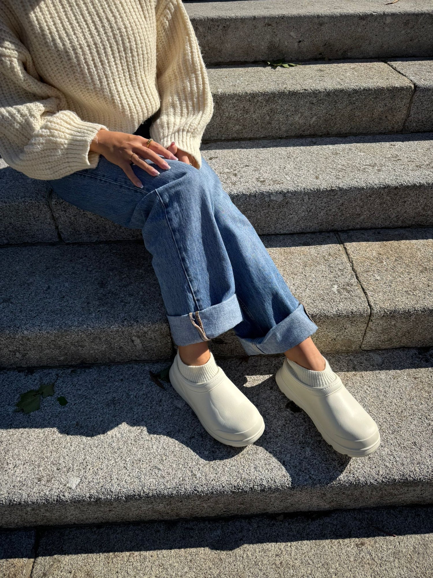 A maior vantagem das Nuvvi Clogs para quem sofre de joanetes é a sua biqueira larga. Uma das principais causas da dor no joanete é a pressão causada por sapatos estreitos e apertados. As Nuvvi Clogs são projetadas com uma biqueira espaçosa que permite que os dedos se abram naturalmente, reduzindo o atrito e a pressão sobre o joanete. Isso ajuda a aliviar a dor e minimizar a irritação, facilitando caminhar ou ficar em pé por longos períodos.