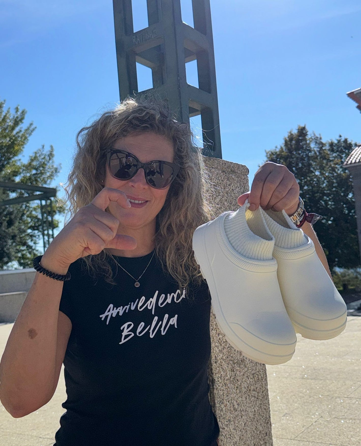 Pessoas com joanete frequentemente apresentam problemas de equilíbrio devido à posição alterada da articulação do dedão do pé. As Nuvvi Clogs apresentam uma sola durável e antiderrapante que proporciona excelente tração em diversas superfícies, seja em um piso de cozinha escorregadio ou em ambientes externos com piso molhado. Essa aderência aprimorada ajuda a manter a estabilidade, reduzindo o risco de quedas ou lesões adicionais causadas por dores nos pés.